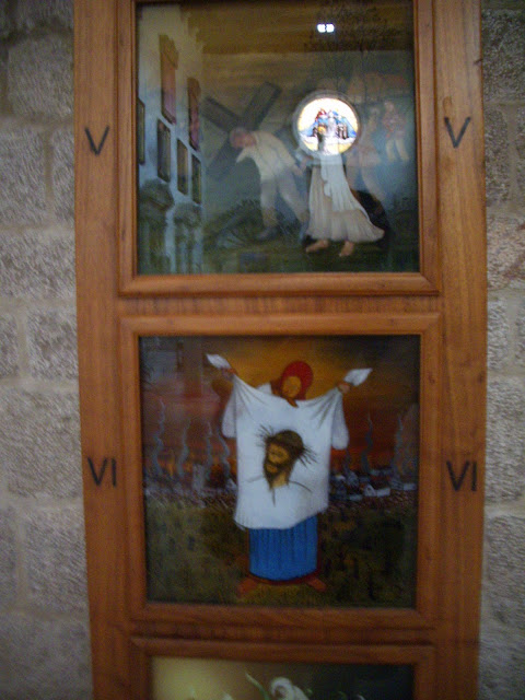 修道院迴廊建於14世紀中葉,屬羅馬後期建築,資料說它很美麗,我覺得一般,雙柱比較少見,柱上刻了圖案、有人像、動物和花卉,走廊中央掛了一幅古老的舊城地圖。博物館不許拍照,我卻矒然不知犯了規,裡面展覽聖物、聖器、手稿、油畫和珠寶之類「必然」藏品,最有興趣是一排古老瓷器藥罐,但十分乾淨,不似古董。